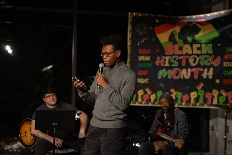 Sam Handerson, a junior history major, was asked to read a poem in honor of black history. Handerson went a step further and composed his own poem, inspired by his own life experiences.